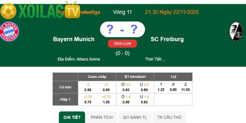 Nhà cái đưa ra mức kèo chấp rất cao cho Bayern Munich (khoảng -2), thể hiện niềm tin vào một chiến thắng đậm. Tuy nhiên, xét thành tích đối đầu gần đây, Freiburg là lựa chọn an toàn hơn ở kèo này.
