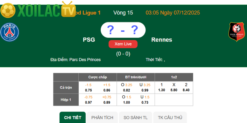 Soi kèo châu Á Paris Saint-Germain – Rennes