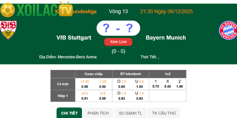 Trận đấu được dự báo sẽ diễn ra với tốc độ cao ngay từ đầu khi cả hai đội đều tôn thờ triết lý bóng đá tấn công. Với dữ liệu bàn thắng khủng từ các trận gần nhất (Stuttgart hòa 3-3, Bayern thắng 6-2), người hâm mộ có quyền hy vọng vào một cơn mưa gôn.
